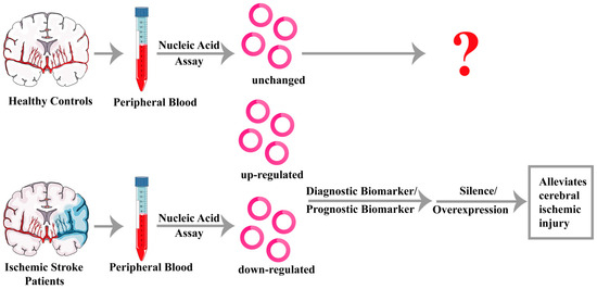 - Zuo, L.; Zhang, L.; Zu, J.; Wang, Z.; Han, B.; Chen, B.; Cheng, M.; Ju, M.; Li, M.; Shu, G.; et al. Circulating Circular RNAs as Biomarkers for the Diagnosis and Prediction of Outcomes in Acute Ischemic Stroke. Stroke 2020, 51, 319–323. [Google Scholar] [CrossRef]