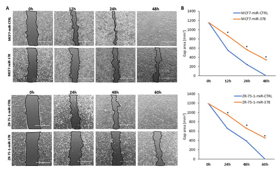 2.4. miR-378 Reduces Cell Proliferation and Migration of Luminal Cells