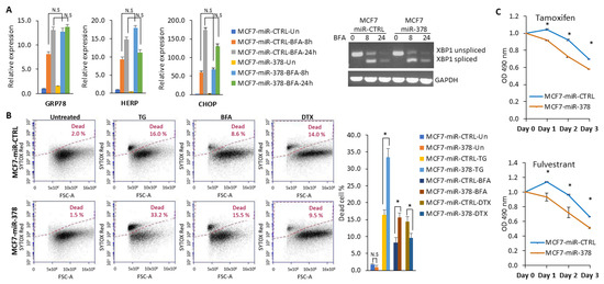 2.3. XBP1 Is Required for Downregulation of miR-378
