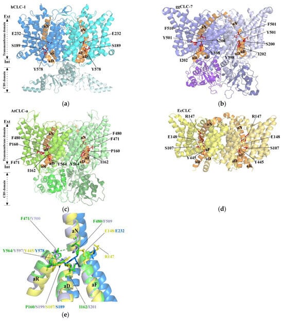 - Picollo, A.; Malvezzi, M.; Houtman, J.C.D.; Accardi, A. Basis of substrate binding and conservation of selectivity in the CLC family of channels and transporters. Nat. Struct. Mol. Biol. 2009, 16, 1294–1301. [Google Scholar] [CrossRef]