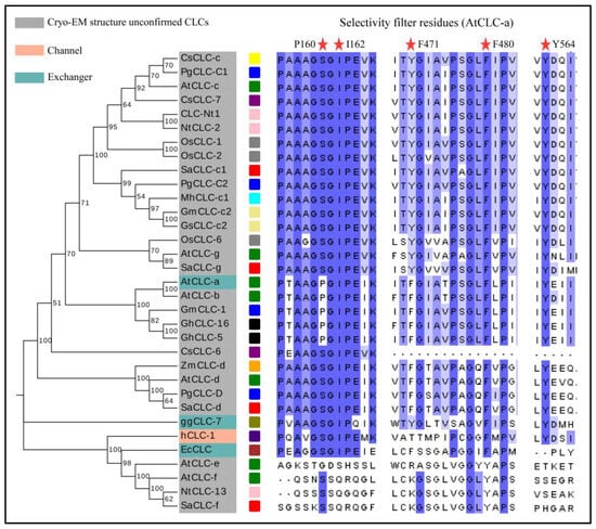 - Nguyen, C.T.; Agorio, A.; Jossier, M.; Depre, S.; Thomine, S.; Filleur, S. Characterization of the Chloride Channel-Like, AtCLCg, Involved in Chloride Tolerance in Arabidopsis thaliana. Plant Cell Physiol. 2016, 57, 764–775. [Google Scholar] [CrossRef] [PubMed]
