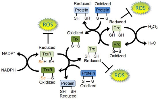 - Arnér, E.S. Focus on mammalian thioredoxin reductases--important selenoproteins with versatile functions. Biochim. Biophys. Acta 2009, 1790, 495–526. [Google Scholar] [CrossRef] [PubMed]
