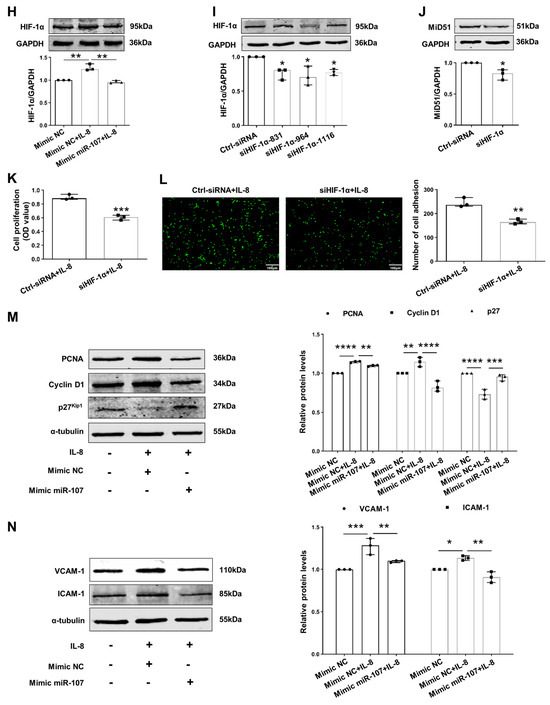 2.3. Downregulation of miR-107 Mediated MiD51 Upregulation by Targeting HIF-1α in IL-8-Induced HUVECs