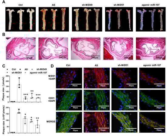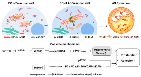 2.4. Potential Therapeutic Implications of MiD49 or miR-107–HIF-1α–MiD51 Pathway in the Formation of the Atherosclerotic Plaque of Mice