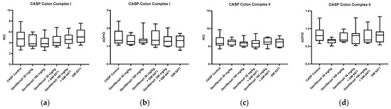 - Herminghaus, A.; Laser, E.; Schulz, J.; Truse, R.; Vollmer, C.; Bauer, I.; Picker, O. Pravastatin and Gemfibrozil Modulate Differently Hepatic and Colonic Mitochondrial Respiration in Tissue Homogenates from Healthy Rats. Cells 2019, 8, 983. [Google Scholar] [CrossRef]
