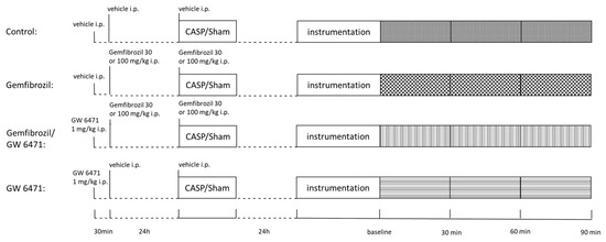 | CASP-Control | Gemfibrozil 30 mg/kg BW | Gemfibrozil 100 mg/kg BW | Gemfibrozil 30 mg/kg BW + GW 6471 | Gemfibrozil 100 mg/kg BW + GW 6471 | GW 6471 | |