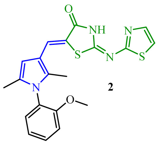 The structure of pyrrole-thiazolidin-4-one hybrid with antibiofilm activity. Green color—highlighted the 4-thiazolidinone-thiazole core.