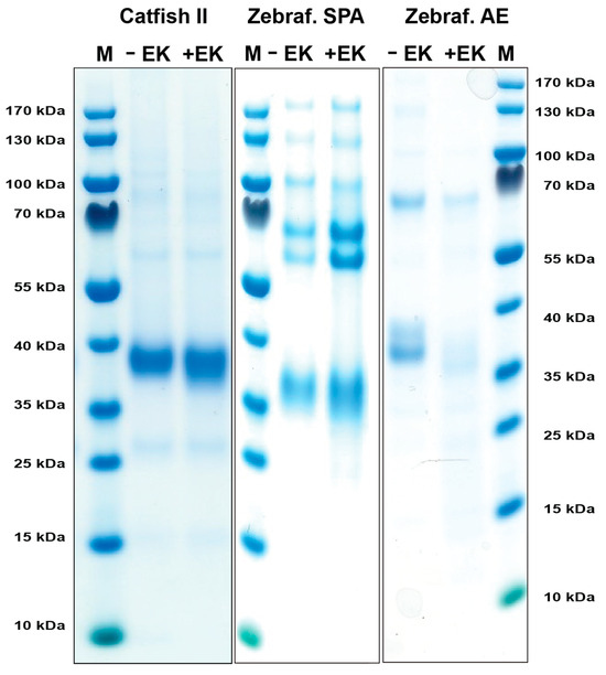 4.2. Production of Recombinant Catfish Granzyme-like II, Zebrafish AE-like, and Zebrafish SPA