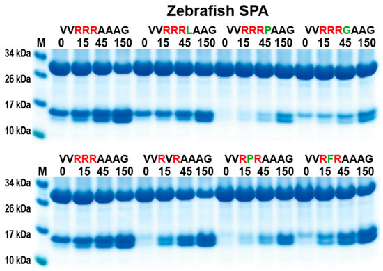 2.6. Analysis of the Cleavage Specificity of Zebrafish SPA
