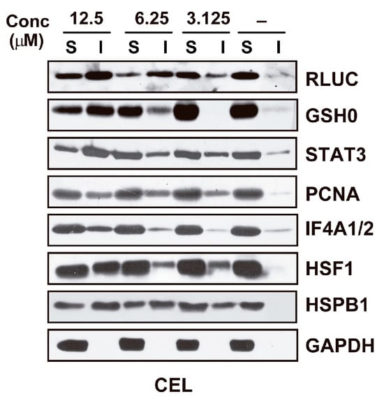 - Trott, A.; West, J.D.; Klaić, L.; Westerheide, S.D.; Silverman, R.B.; Morimoto, R.I.; Morano, K.A. Activation of Heat Shock and Antioxidant Responses by the Natural Product Celastrol: Transcriptional Signatures of a Thiol-targeted Molecule. Mol. Biol. Cell 2008, 19, 1104–1112. [Google Scholar] [CrossRef] [PubMed]