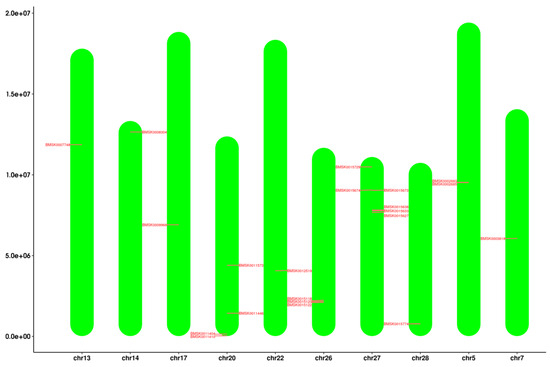 The target genes were mainly distributed on chromosomes 5, 7, 13, 14, 17, 20, 26, 27, and 28. Chromosome 27 has the most target genes, followed by chromosomes 20 and 26 (Figure 2). No active tandem genes and gene replication pairs were found in the preliminary screening, while the results need to be further verified.