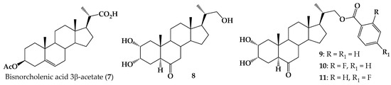 BR analogs 8–11 were synthesized from a commercially starting material, namely (20S)-3β-acetoxy-5-pregnen-20-carboxylic acid (7) (Steraloid Inc. New York, NY, USA, bisnor-cholenic acid 3β-acetate) (Figure 2).