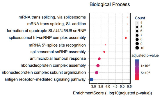 A total of 1182 differentially expressed genes (DEGs) were identified between control- and CRISPRa dCas9-VPR L02 cells (p < 0.05; log2(fold-change) > 0.75). To explore the functional properties of DEGs and infer the underlying mechanisms by L1 activation, we performed the Gene Ontology (GO) analysis. The results showed enriched GO terms such as antimicrobial humoral response, RNA splicing, T-cell receptor complex, and antigen-receptor-mediated signaling pathway (Figure 4).