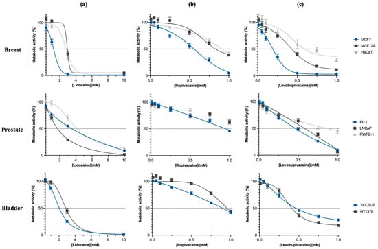 - Jose, C.; Hebert-chatelain, E.; Dias, N.; Roche, E.; Obre, E.; Lacombe, D.; Reza, H.; Pourquier, P. Redox Biology Redox Mechanism of Levobupivacaine Cytostatic e Ff Ect on Human Prostate Cancer Cells. Redox. Biol. 2018, 18, 33–42. [Google Scholar] [CrossRef] [PubMed]