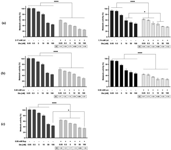 2.2. LAs and Dtx Act Synergistically on Metastatic Prostate Cancer Cell Lines