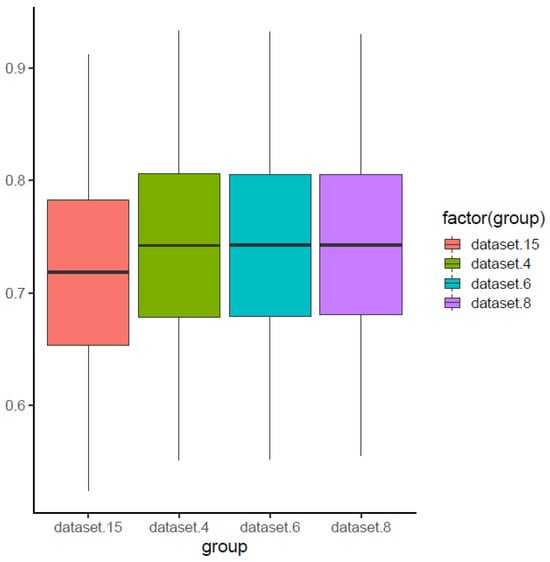 Mean AUC for four analyzed groups with 15, 8, 6, and 4 markers.