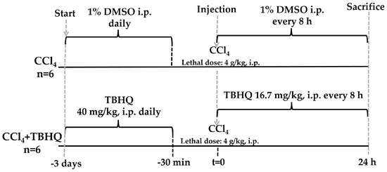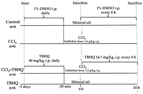 Pretreatments with TBHQ (40 mg/kg, i.p., every 8 h) [21,22] started three days before CCl4 intoxication [19].