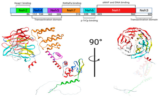 The Nrf2 is a transcription factor with seven domains: Neh 1, Neh 2, Neh 3, Neh 4, Neh 5, Neh 6, and Neh 7 (Table 6 and Figure 14).