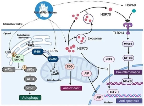 - Liu, D.; Han, X.; Zhang, Z.; Tse, G.; Shao, Q.; Liu, T. Role of heat shock proteins in atrial fibrillation: From molecular mechanisms to diagnostic and therapeutic opportunities. Cells 2022, 12, 151. [Google Scholar] [CrossRef] [PubMed]