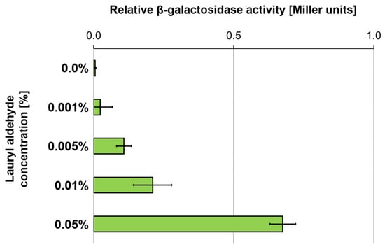 Based on the predicted enzymatic activity of the enzymes encoded within the slfCHSL gene cluster, we hypothesized that either dodecanol or lauryl aldehyde (dodecanal) might function as the inducer of the PslfC promoter, as SDS hydrolysis to the former compound takes place outside of the cell [17]. Subsequently, we confirmed that the addition of lauryl aldehyde to the medium resulted in the induction of the PslfC promoter, as indicated by the increase in β-galactosidase activity (Figure 5). No such effect was observed for SDS or dodecanol.