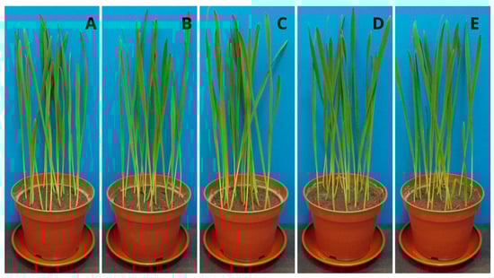 Oat seedlings (Avena sativa): (A) control sample (without PPC), (B) 250 mg, (C) 500 mg, (D) 750 mg, and (E) 1000 mg of PPC/kg soil dry matter.