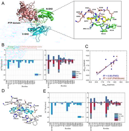 Yuan, Z.; Chen, X.; Fan, S.; Chang, L.; Chu, L.; Zhang, Y.; Wang, J.; Li, S.; Xie, J.; Hu, J.; et al. Binding Free Energy Calculation Based on the Fragment Molecular Orbital Method and Its Application in Designing Novel SHP-2 Allosteric Inhibitors. Int. J. Mol. Sci. 2024, 25, 671. https://doi.org/10.3390/ijms25010671