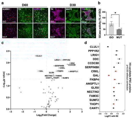 2.3. Secretome Changes in GBA1-PD iPSC-Derived mDA Neuron Culture Supernatant