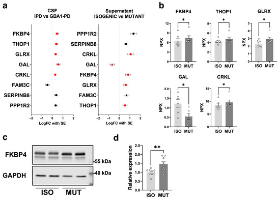 Kojima, R.; Paslawski, W.; Lyu, G.; Arenas, E.; Zhang, X.; Svenningsson, P. Secretome Analyses Identify FKBP4 as a GBA1-Associated Protein in CSF and iPS Cells from Parkinson’s Disease Patients with GBA1 Mutations. Int. J. Mol. Sci. 2024, 25, 683. https://doi.org/10.3390/ijms25010683