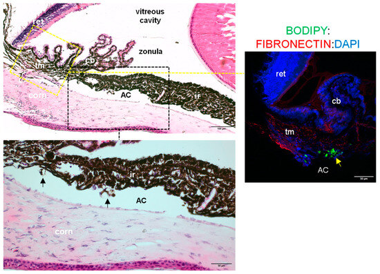 - Roberts, A.L.; Mavlyutov, T.A.; Perlmutter, T.E.; Curry, S.M.; Harris, S.L.; Chauhan, A.K.; McDowell, C.M. Fibronectin Extra Domain A (FN-EDA) Elevates Intraocular Pressure through Toll-like Receptor 4 Signaling. Sci. Rep. 2020, 10, 9815. [Google Scholar] [CrossRef]