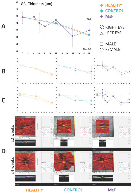 - Rodrigo, M.J.; Martinez-Rincon, T.; Subias, M.; Mendez-Martinez, S.; Pablo, L.E.; Polo, V.; Aragon-Navas, A.; Garcia-Herranz, D.; Feijoo, J.G.; Osuna, I.B.; et al. Influence of Sex on Neuroretinal Degeneration: Six-Month Follow-Up in Rats with Chronic Glaucoma. Investig. Ophthalmol. Vis. Sci. 2021, 62, 9. [Google Scholar] [CrossRef]