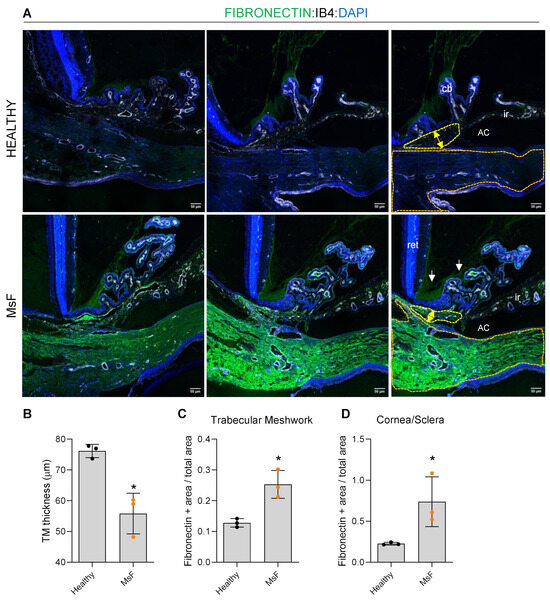 - Mavlyutov, T.A.; Myrah, J.J.; Chauhan, A.K.; Liu, Y.; McDowell, C.M. Fibronectin Extra Domain A (FN-EDA) Causes Glaucomatous Trabecular Meshwork, Retina, and Optic Nerve Damage in Mice. Cell Biosci. 2022, 12, 72. [Google Scholar] [CrossRef] [PubMed]