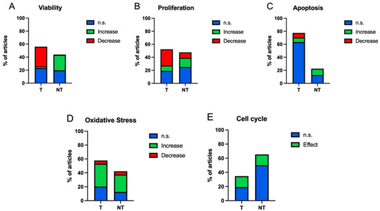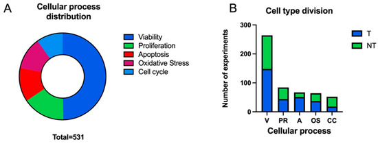 - Second division: tumour cells (T)/non-tumour cells (NT). The results of the different articles are divided according to whether they use tumour or non-tumour cells independently of the tissue from which they originate.