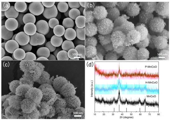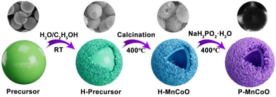 3.2. Synthesis of the MnCoO, H-MnCoO, P-MnCoO Hollow Spheres