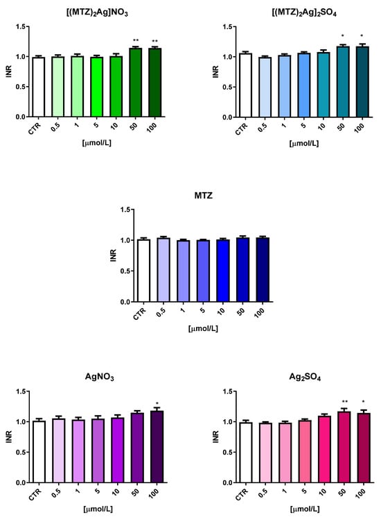 - Radko, L.; Stypuła-Trębas, S.; Posyniak, A.; Żyro, D.; Ochocki, J. Silver(I) Complexes of the Pharmaceutical Agents Metronidazole and 4-Hydroxymethylpyridine: Comparison of Cytotoxic Profile for Potential Clinical Application. Molecules 2019, 24, 1949. [Google Scholar] [CrossRef]