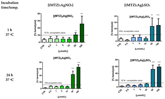 | [(MTZ)2AgNO3] | 3.0 ± 0.3 | 46.0 ± 1.6 | 15.30 |