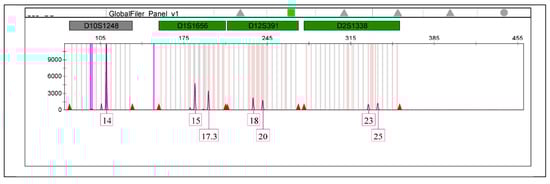 The autosomal STR electropherograms of Jane Doe 3 (Figure 3) and her alleged daughter (Figure 4) are analyzed using the Gene Mapper ID-X software version 1.4 (Applied Biosystems, Waltham, MA, USA).