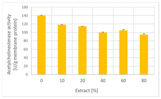 This study showed the inhibition of erythrocyte acetylcholinesterase by garlic extract. Inhibition of acetylcholinesterase by allicin [47] and essential garlic oils [48] was reported previously and speculated to have the potential to improve learning and memory and ameliorate the decline of cognitive function and memory loss associated with Alzheimer’s disease [47,49]. This aspect does not concern the erythrocyte acetylcholinesterase, whose function is still a mystery, but the decrease in the activity of this enzyme may be a marker of exposure to garlic.