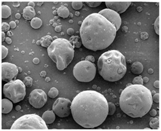 The solubility of a drug influences the choice of formulation for oral administration, dissolution, and absorption in the digestive tube and whether it is a suitable candidate for formulation as a gastroretentive dose form. Longer stomach transit times contribute to increased solubility and, thus, to absorption. Water-insoluble medicines have limited therapeutic effects due to low solubility and dissolving rates [11]. The gastrointestinal absorption of any active substance is severely limited by its low water solubility. In earlier research, we looked at different methods to improve the active ingredient’s solubility and the impact of formulation parameters on CLZ’s stability [12,13,14]. The study is predicated on novel oral matrix tablets that were designed to maximize the low oral bioavailability using chitosan and Kollidon®SR. Made up of 80% polyvinyl acetate (Mr = 450,000 Daltons) and 20% polyvinylpyrrolidone (povidone) (Mr = 40,000 Daltons), Kollidon®SR (KOL) is a physical mixture of polymers [15,16]. KOL is one of the utilized hydrophilic excipients in the formulation and production of modified-release matrix tablets. KOL is presented as a white or yellowish-white powder with spherical particles of 80–100 μm (Figure 1), insoluble in water, and very stable (more than two years) at 20–25 °C. It has flow properties, an angle of repose less than 30°, an angle of repose of 21°, a flow time of 9.5 g/s, a compression force of 10 kN, and a hardness of 170 N. The literature contains a wealth of research showcasing that matrix-forming agents are effective and adaptable. The release of the active substance from the matrix modified-release tablets is dependent on its degree of solubility in the dissolution medium as well as on the composition of the matrix forming. Analogous research was published in the literature [17] (Figure 2).