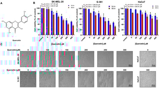 2.1. Quercetin Decreased Viability and Changed Cellular Morphology in Melanoma Cells