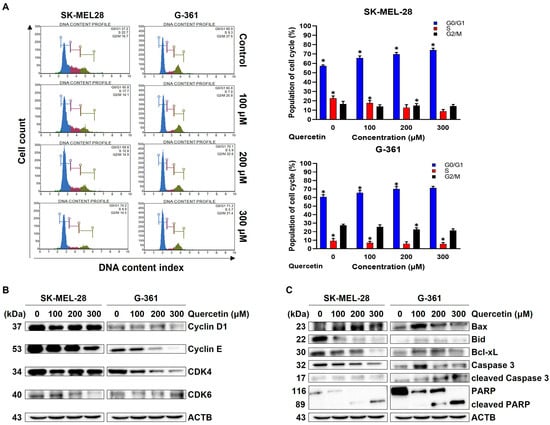 2.3. Quercetin Regulated Cell-Cycle Arrest and Apoptosis-Related Protein in Melanoma Cells