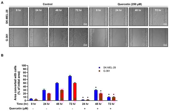 2.6. Quercetin Inhibited Malignant Melanoma Cell Migration