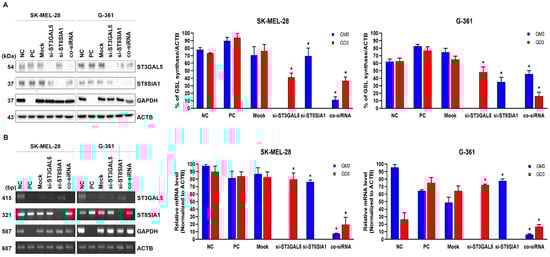 2.8. Reduced Ganglioside Expression Levels by ST8SIA1 and/or ST3GAL5 Knockdown in Melanoma Cells