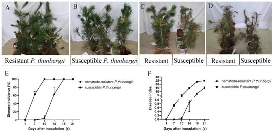 - Sun, T.; Rahman, M.U.; Wu, X.; Ye, J.R. Resistant and Susceptible Pinus thunbergii ParL. Show Highly Divergent Patterns of Differentially Expressed Genes during the Process of Infection by Bursaphelenchus xylophilus. Int. J. Mol. Sci. 2023, 24, 14376. [Google Scholar] [CrossRef] [PubMed]