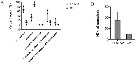 4.7. Nematode Motility and Proliferation in Salicylic Acid Treatment