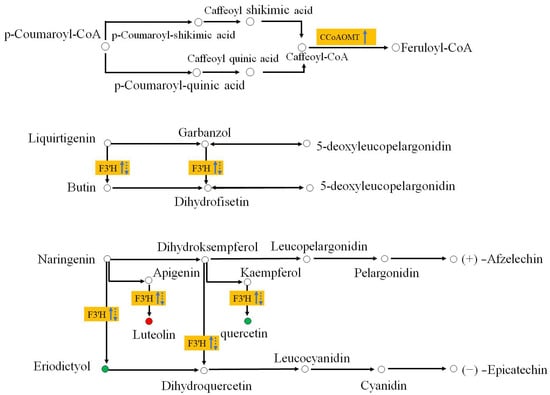 - Shaipulah, N.F.M.; Muhlemann, J.K.; Woodworth, B.D.; Moerkercke, A.; Verdonk, J.C.; Ramirez, A.A.; Haring, M.A.; Dudareva, N.; Schuurink, R.C. CCoAOMT down-regulation activates anthocyanin biosynthesis in Petunia. Plant Physiol. 2016, 170, 717–731. [Google Scholar] [CrossRef] [PubMed]