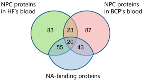 - More proteins involved in the regulation of immune response were detected in the composition of NPC passenger proteins in the blood of BCPs than in HFs (14 vs. 8, Figure 5f).