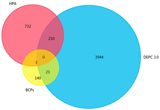 Venn–Euler diagram of NPC proteins from BCP blood in dbDEPC and dbHPA, composed using QuickGO 2.0 and FunRich 3.13 software.