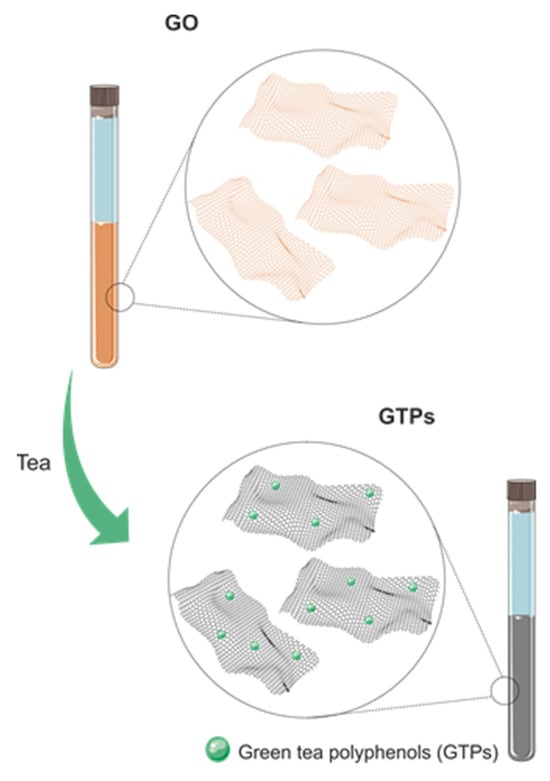 - Abdullah, M.F.; Zakaria, R.; Zein, S.H.S. Green tea polyphenol–reduced graphene oxide: Derivatisation, reduction efficiency, reduction mechanism and cytotoxicity. RSC Adv. 2014, 4, 34510–34518. [Google Scholar] [CrossRef]