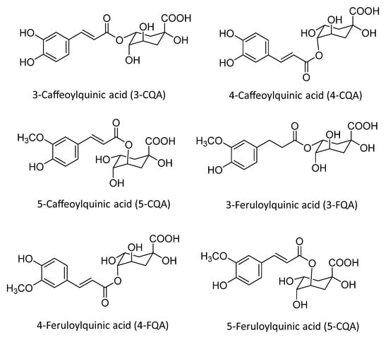 - Sato, Y.; Itagaki, S.; Kurokawa, T.; Ogura, J.; Kobayashi, M.; Hirano, T.; Sugawara, M.; Iseki, K. In vitro and in vivo antioxidant properties of chlorogenic acid and caffeic acid. Int. J. Pharm. 2011, 403, 136–138. [Google Scholar] [CrossRef]