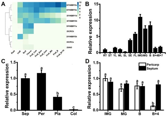 2.2. SlYABBY2a Is Specifically Expressed in the Septum of Tomato Fruit